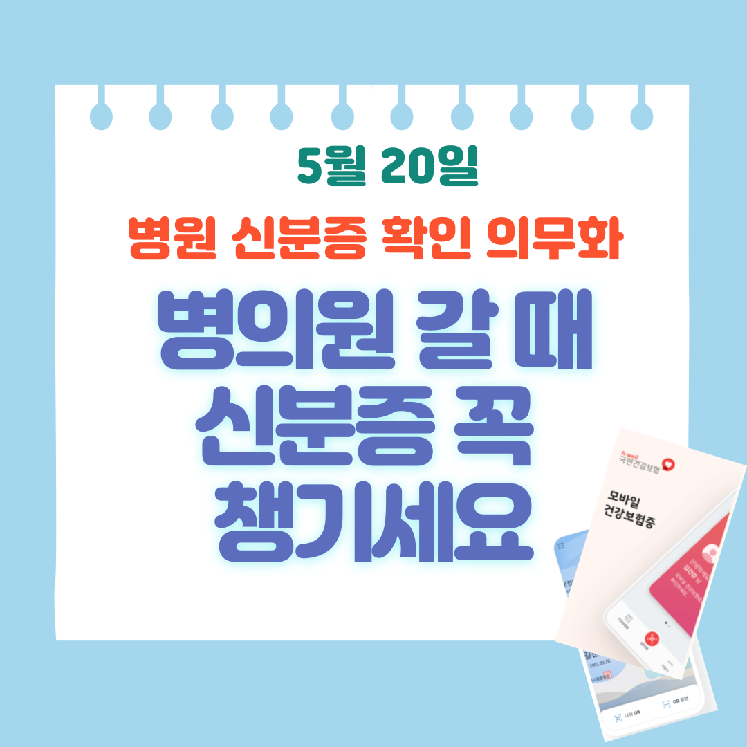 24년 5월 20일부터 병원에서 건강보험을 적용받기 위해서는 반드시 신분증을 지참해야 합니다.