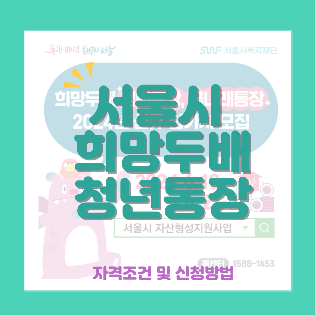 청년들의 목돈 형성을 위한 좋은 제도인 서울시 희망두배 청년통장에 관심 있으신 경우 미리 준비하셔서 좋은 결과 이루시길 바랍니다.